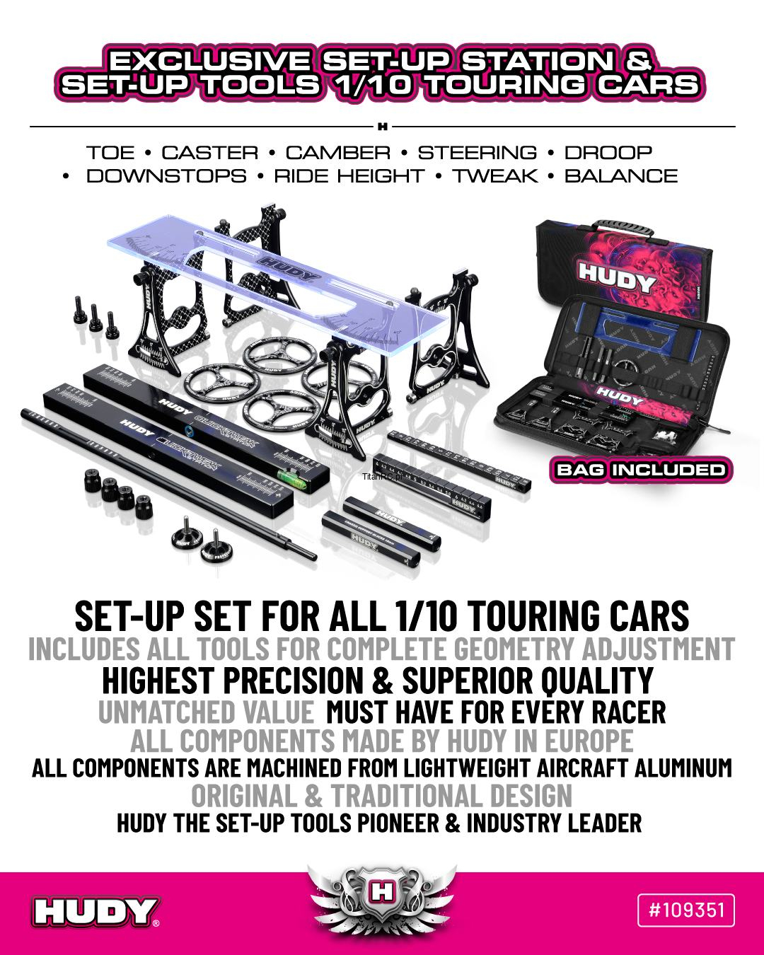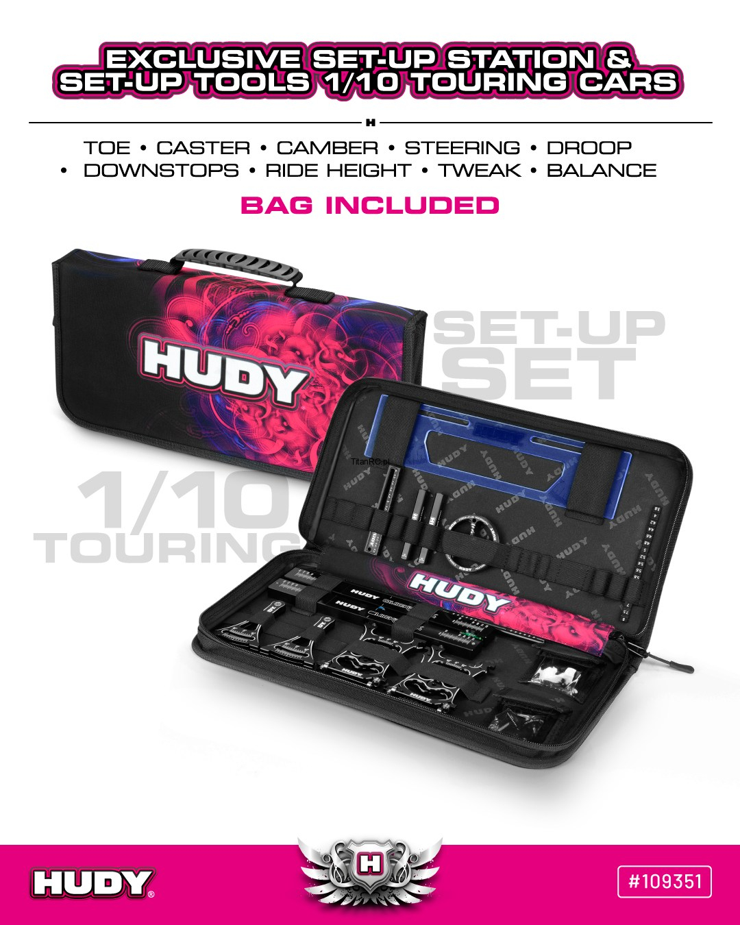 HUDY 109351 SET-UP STATION & SET-UP TOOLS + CARRYING BAG FOR 1/10 TOURING CARS