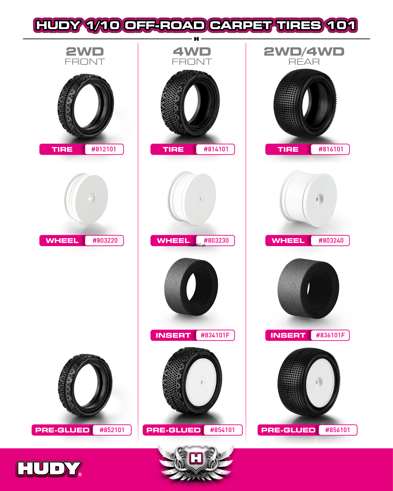HUDY 856101 Carpet Offroad 2WD/4WD Tire Pre-glued 1:10 - Rear 101 (2)
