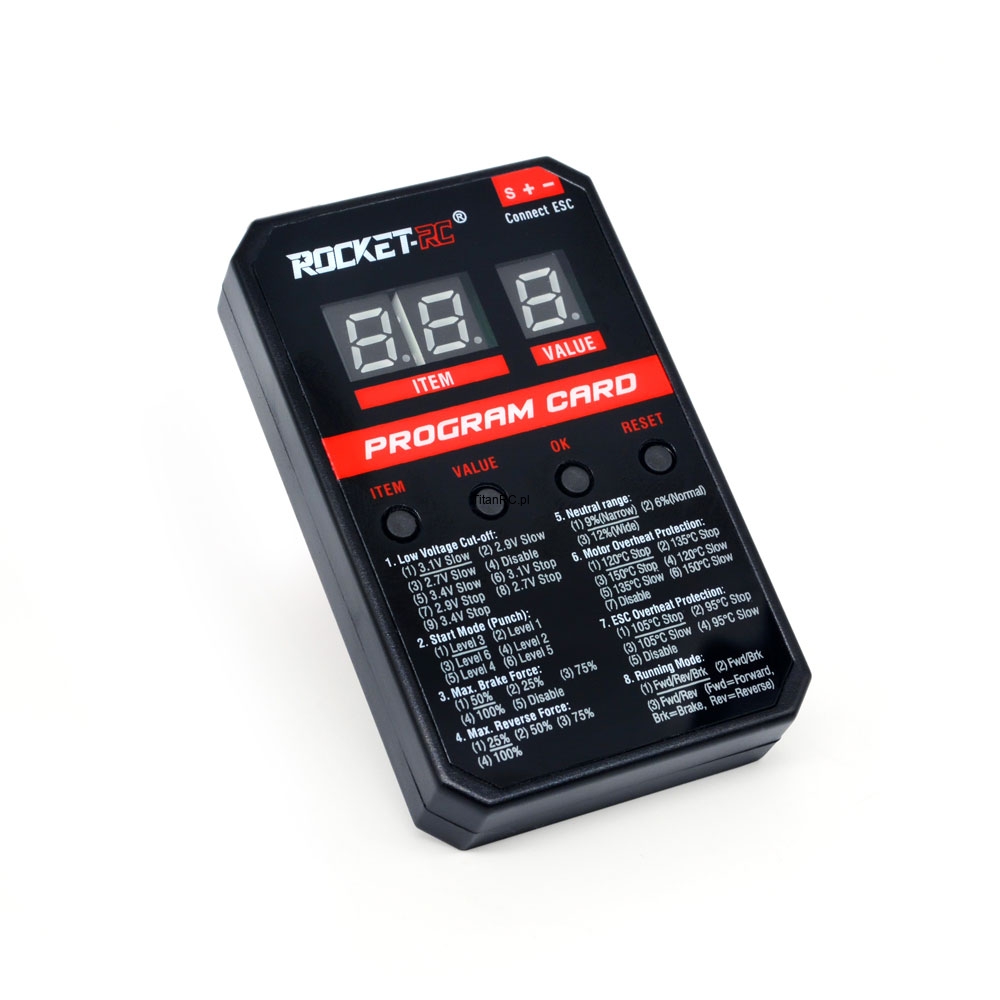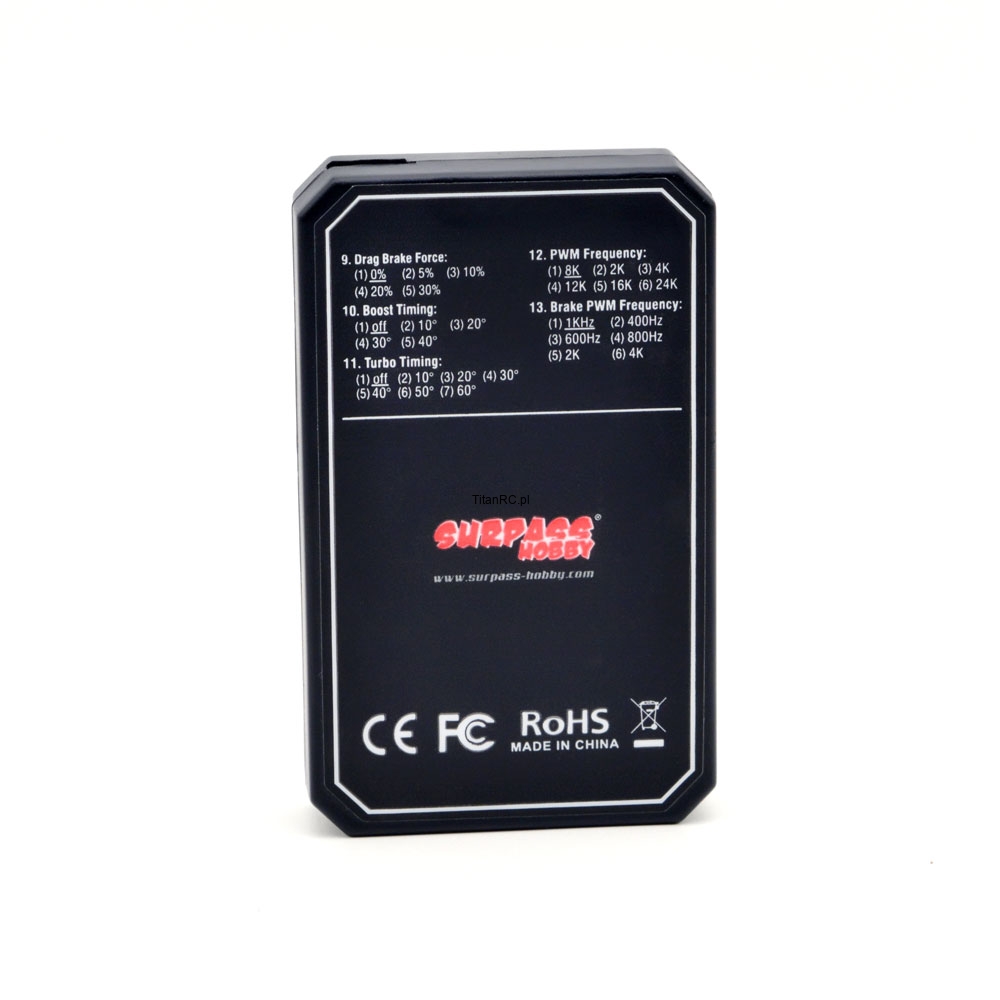 Korzystając z karty programowej Surpass Hobby Rocket V2, zyskujesz pełną kontrolę nad TS80A/120A. Niezależnie od twojego doświadczenia w świecie modeli RC, ta karta otwiera przed tobą drzwi do zaawansowanych funkcji, które umożliwią dostosowanie modelu do indywidualnych upodobań oraz konkretnych warunków jazdy.