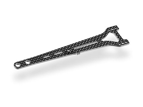 Rear part of the split upper deck. The split (2 piece) top deck is recommended mainly for asphalt tracks. The graphite top deck features milled holes for special tweak-free top deck screws. The top deck offers more steering response, and more on power steering. The flex characteristic is different than the kit top deck, and the 2 pieces allows for more flex options, which can be adjusted individually between the front and rear.