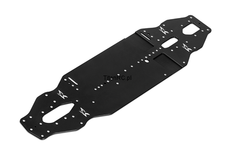 Extensively tested and recommended for high- and very-high traction tracks, this narrow chassis is CNC-machined from 2mm premium Swiss 7075 T6 and additionally black coated.