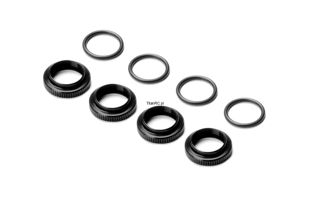 XRAY 308040-K Shock Adj. Nut Alu + O-Ring - Black (4)