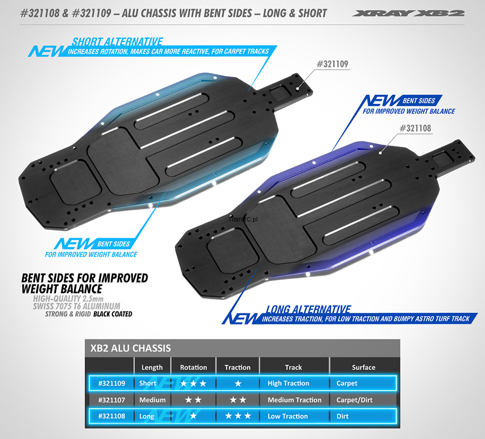XRAY 321109 XB2 Alu Chassis With Bent Sides - Swiss 7075 T6 (2.5MM) - Short