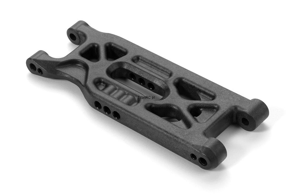 Front lower suspension arm made from specially-formulated graphite composite material. The exclusive composite mixture used for suspension arms is a perfect balance between reliability and performance. The suspension arm is rigid to provide a responsive feel and extreme durability.