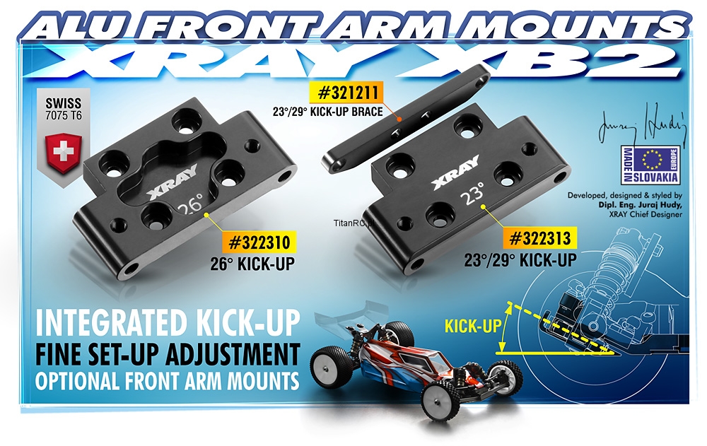 XRAY 322310 Alu Front Lower Arm Mount 26° KICK-Up - Swiss 7075 T6 ( ZASTĄPIONY - 322316)