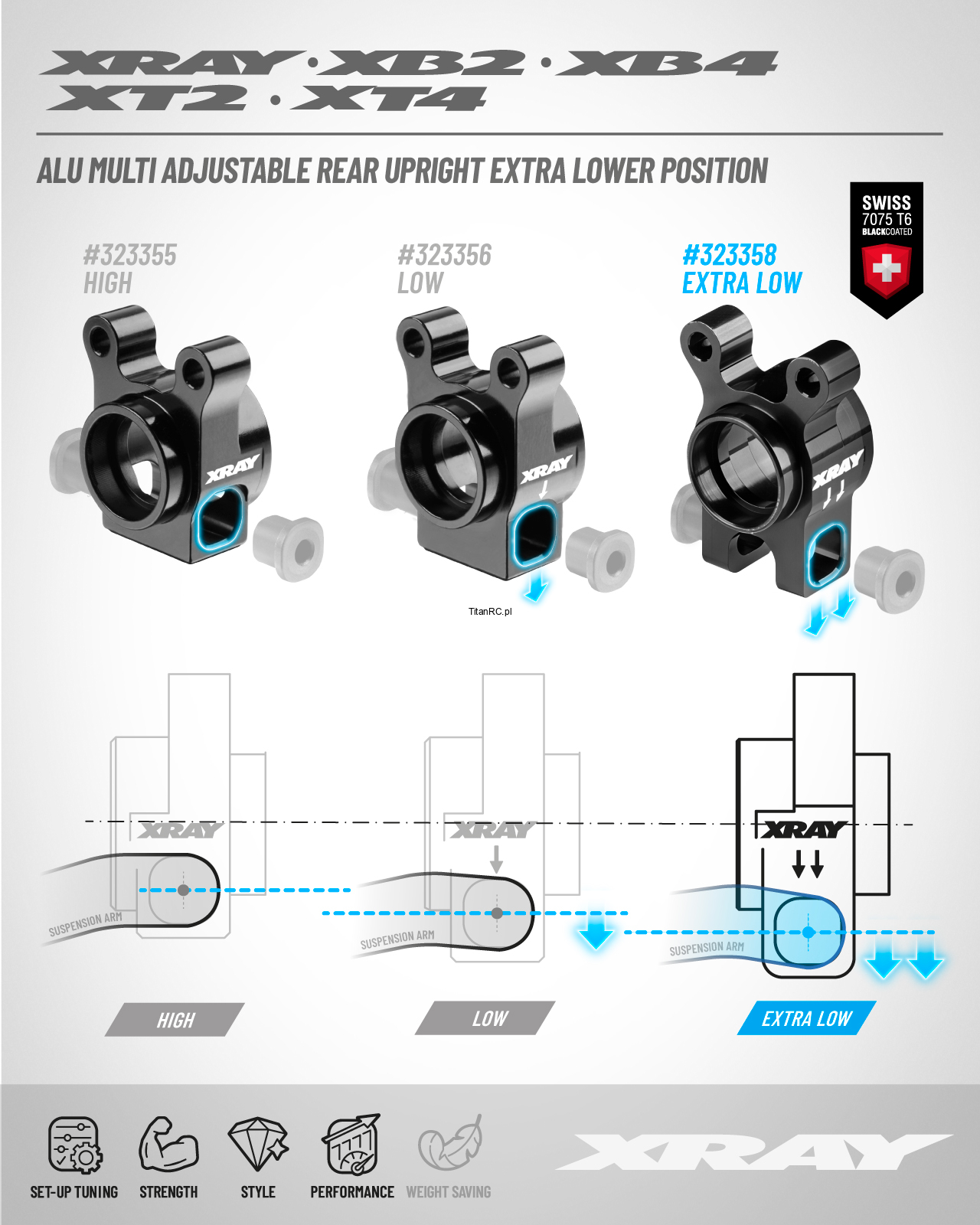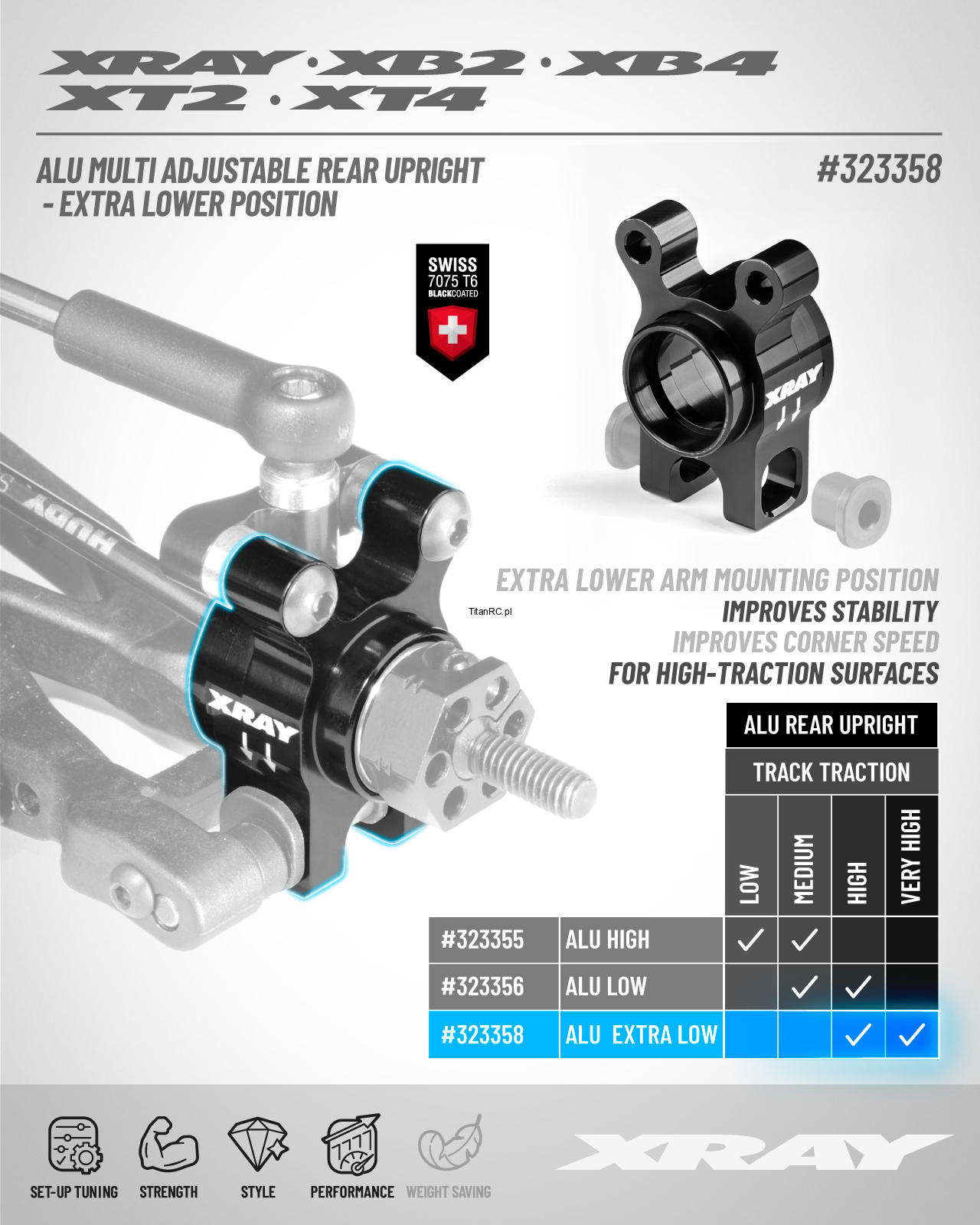 XRAY 323358 ALU MULTI ADJUSTABLE REAR UPRIGHT - EXTRA LOWER POSITION