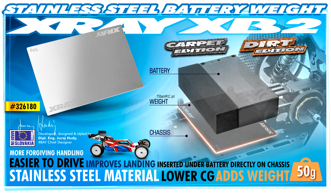 XRAY 326180 Stainless Steel Battery Weight 50G