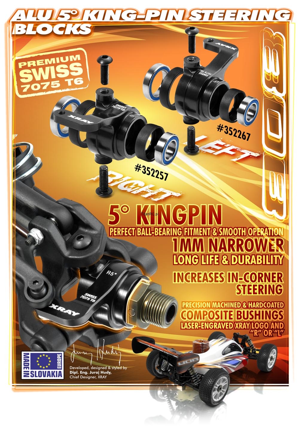 XRAY 352257 XB808 Alu Steering Block Right - 5° KingPin - SetXRAY 352257 XB808 Alu Steering Block Right - 5° KingPin - SetXRAY 352257 XB808 Alu Steering Block Right - 5° KingPin - Set