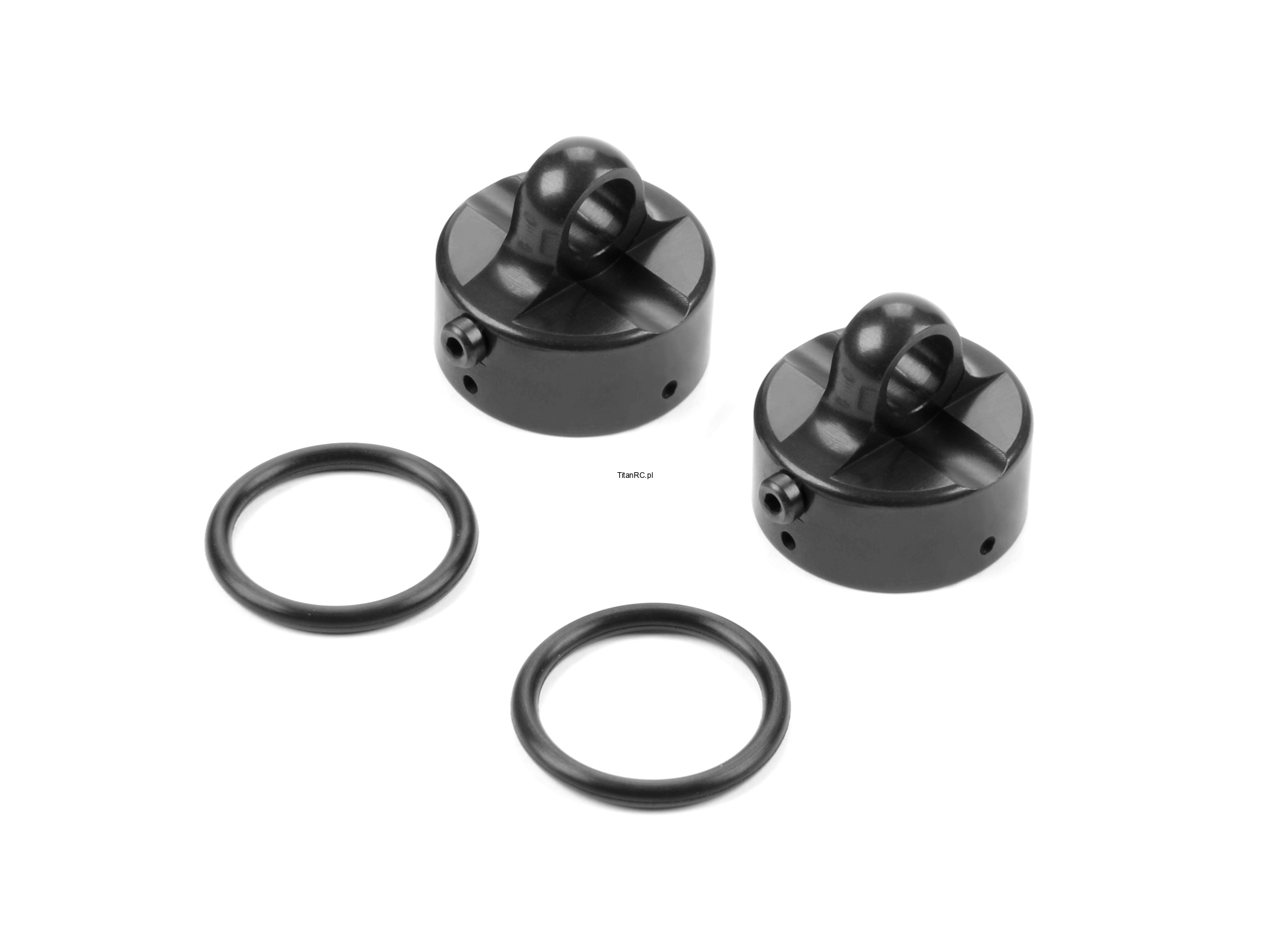Jednoczęściowa aluminiowa nasadka amortyzatora do XB8 i GTX ma mały otwór odpowietrzający, który sprawia, że montaż amortyzatora jest bardzo przewidywalny i łatwy, umożliwiając łatwe ujście nadmiaru oleju z amortyzatora. Obrobione krawędzie wewnętrzne zapewniają prawidłowe umieszczenie i uszczelnienie super miękkiej silikonowej membrany. Czarny powlekany. Obrabiane CNC z najwyższej jakości lekkiego aluminium 7075 T6. Zestaw 2 sztuk