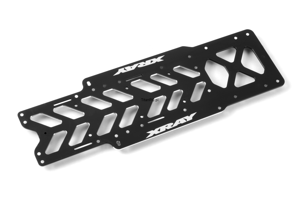 Aluminum X10'18 chassis designed to increase traction, stability, and steering in specific conditions. The alu chassis provides better control and makes the car easier to drive. This innovative alu chassis has been extensively tested and is recommended for low-, medium-, and high-traction tracks. CNC-machined from 2mm thick premium Swiss 7075 T6, additionally black coated.