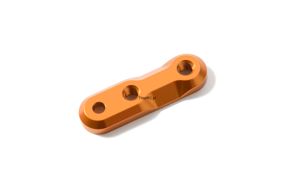 Universal front alu body post plate for X1 allows use of popular front wings with different body post mounting positions. Using this post plate, the position of the body post remains the same regardless of the front wing you use; no more cutting different post holes for different wings! The bodymount plate is 4mm high, which is the same distance as between pin holes in the body post. Therefore, when using this plate you must lower the pin by 1 hole position. CNC-machined from high-quality aluminum, anodized orange to perfectly match the X1. A “must have” for every X1 driver!